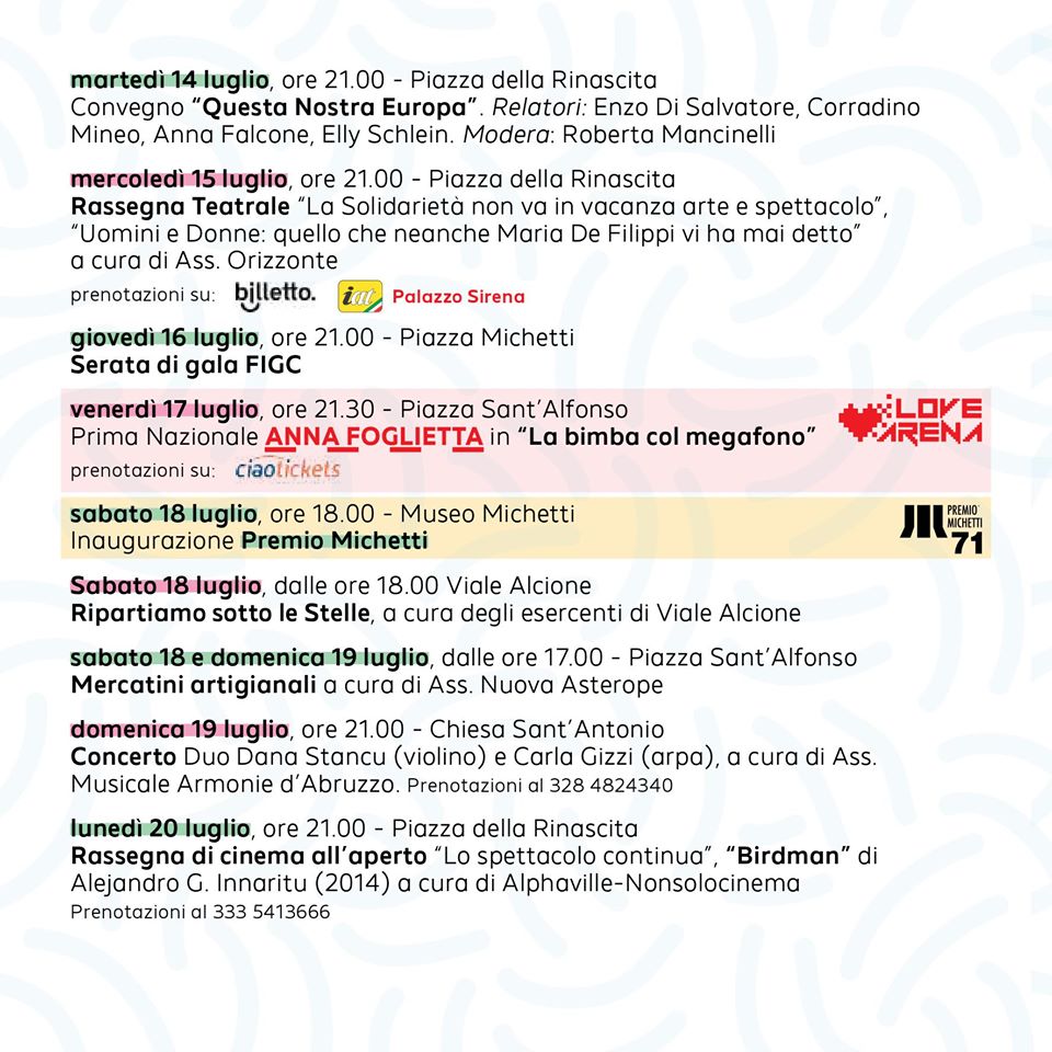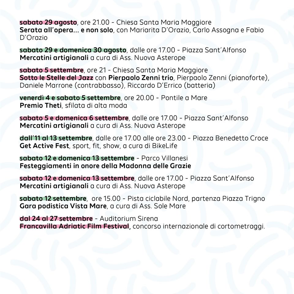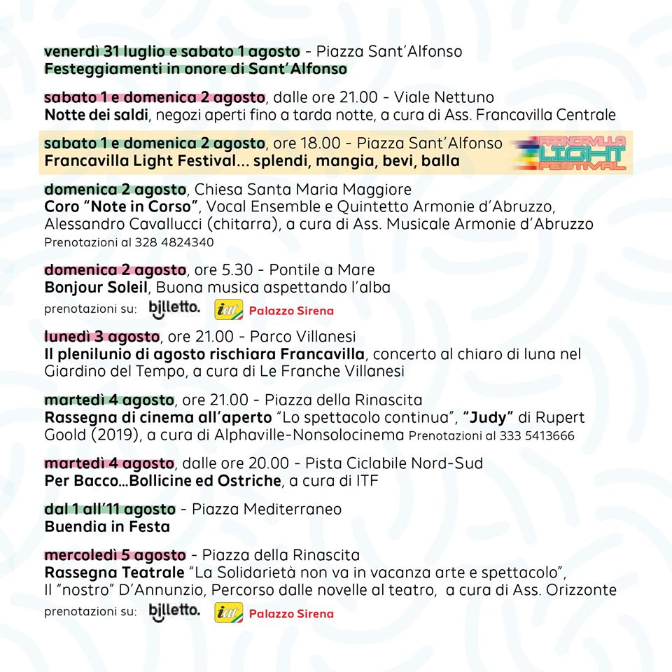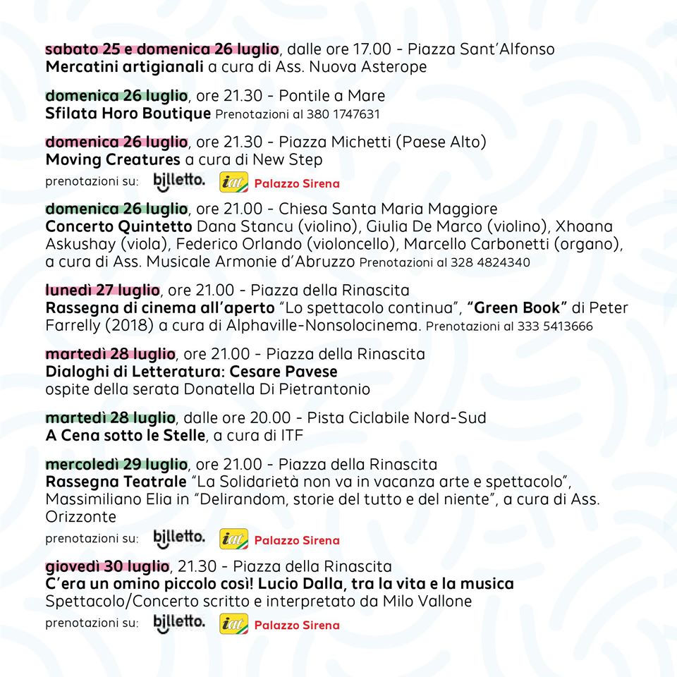 Presentato il programma degli eventi per l’estate 2020 a Francavilla al Mare (CH).